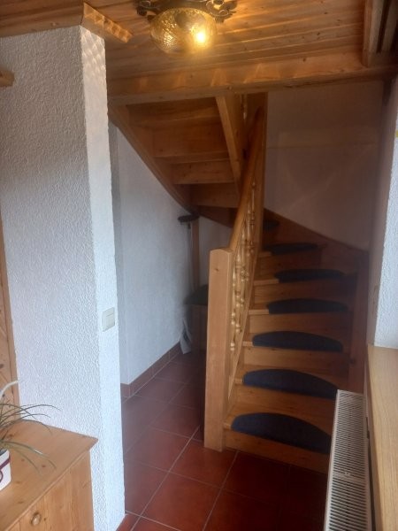 Aufgang über eine Holzwendeltreppe im Appartement, 2