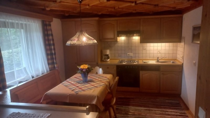 Einrichtung aus Massivhölzern, Küche inkl. Mikrowelle und