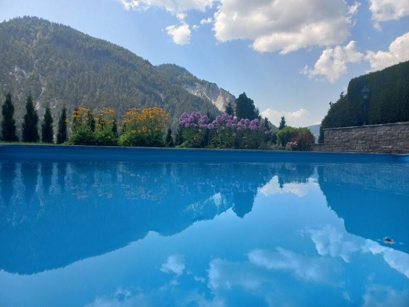 unsere Swimmingpool-Anlage mit einer Arkade, Sitzecke,